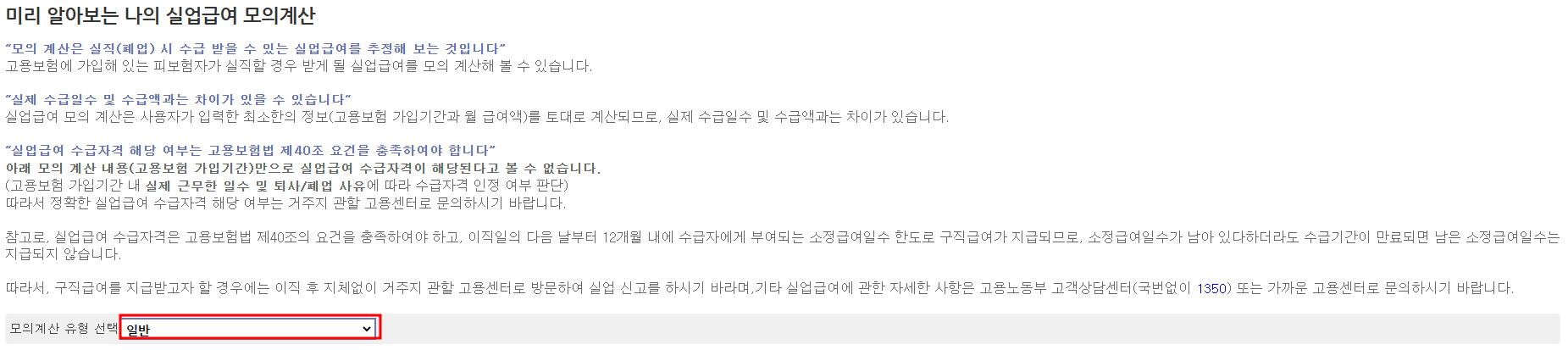 실업급여 모의계산 방법 (자영업자, 일반근로자, 일용근로자)